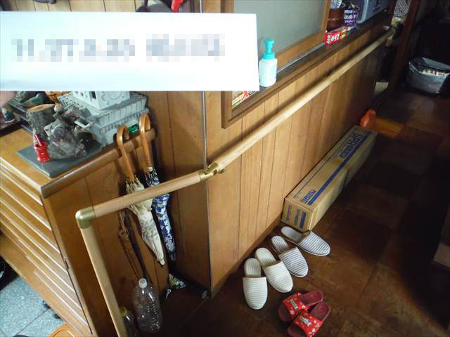 ちょっとした事ですが少しの段差につまづいたりするととても危険です。 今回そういったちょっとした段差にスロープをかけ、手すりをつける工事をしました。